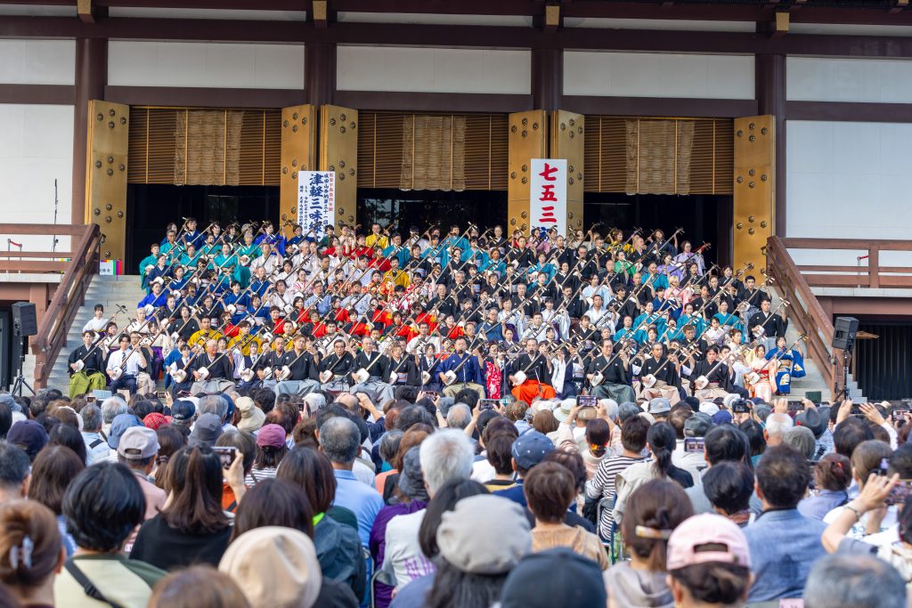 第31回 成田弦まつり 2025 10/19 行事 10月18日・19日の2日間にわたり、お不動さまのご加護に感謝し、音楽を奉納するお祭り「成田弦まつり」が開催されました。本年で31回目を迎え、参道各所に設けられたステージは演奏を聴く観客で終日活気にあふれていました。また、18日の夕刻からは大本堂前で約200人の奏者による津軽三味線の奉納合奏が行われました。 行事 【告知】第31回 成田弦まつり その他の記事 2025年10月 (4)2025年9月 (13)