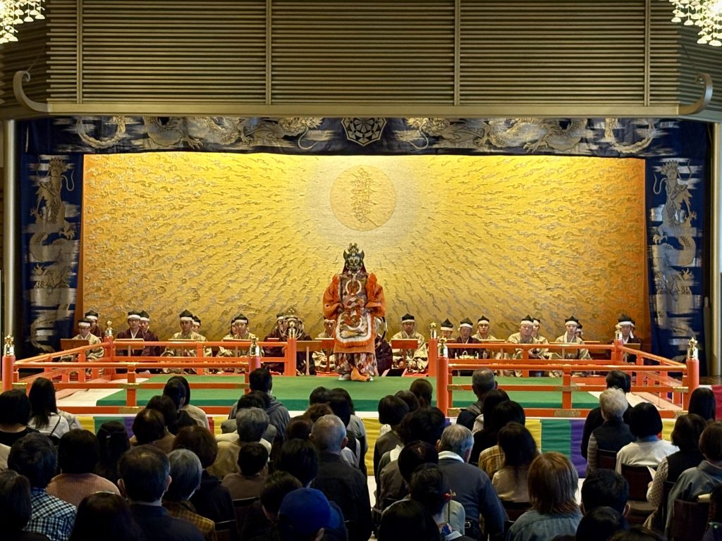 第42回 成田山雅楽演奏会 2025 11/03 行事 本日、光輪閣4階光輪の間にて、成田山雅楽部による雅楽演奏会が開催されました。管絃の『賀殿急』と『武徳楽』は、華やかさと力強さのある響きで幻想的な雰囲気を醸し出しました。舞楽の『陵王』は、迫力ある太鼓の音と縁起の良い舞が特徴で、その躍動的な舞姿が観客を魅了しました。 行事 七五三祝祷のご案内 その他の記事 2025年11月 (3)2025年10月 (5)2025年9月 (13)