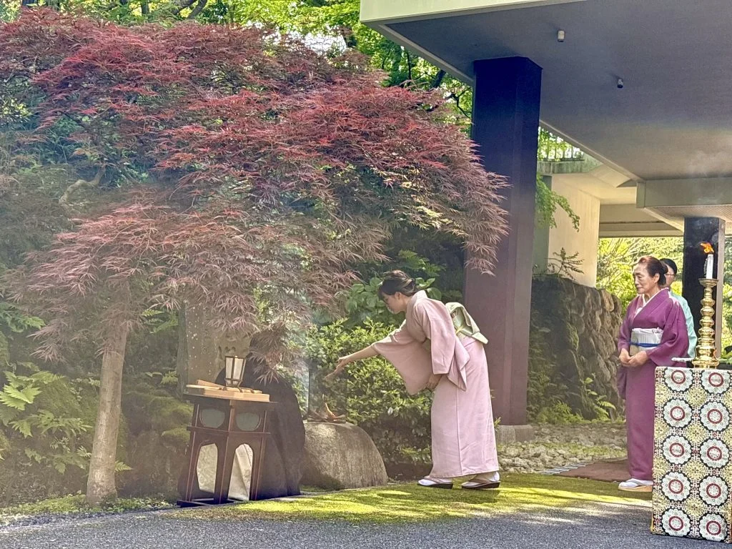 長年愛用した茶筅をお焚き上げする茶筅供養会を、岸田照泰貫首大導師のもと成田山書道美術館前庭の茶筅塚にて厳修しました。供養会には表千家同門会千葉県支部の約150名の方々が参列。茶筅一つひとつに感謝を込めてお焚き上げし、供養の誠を捧げました。