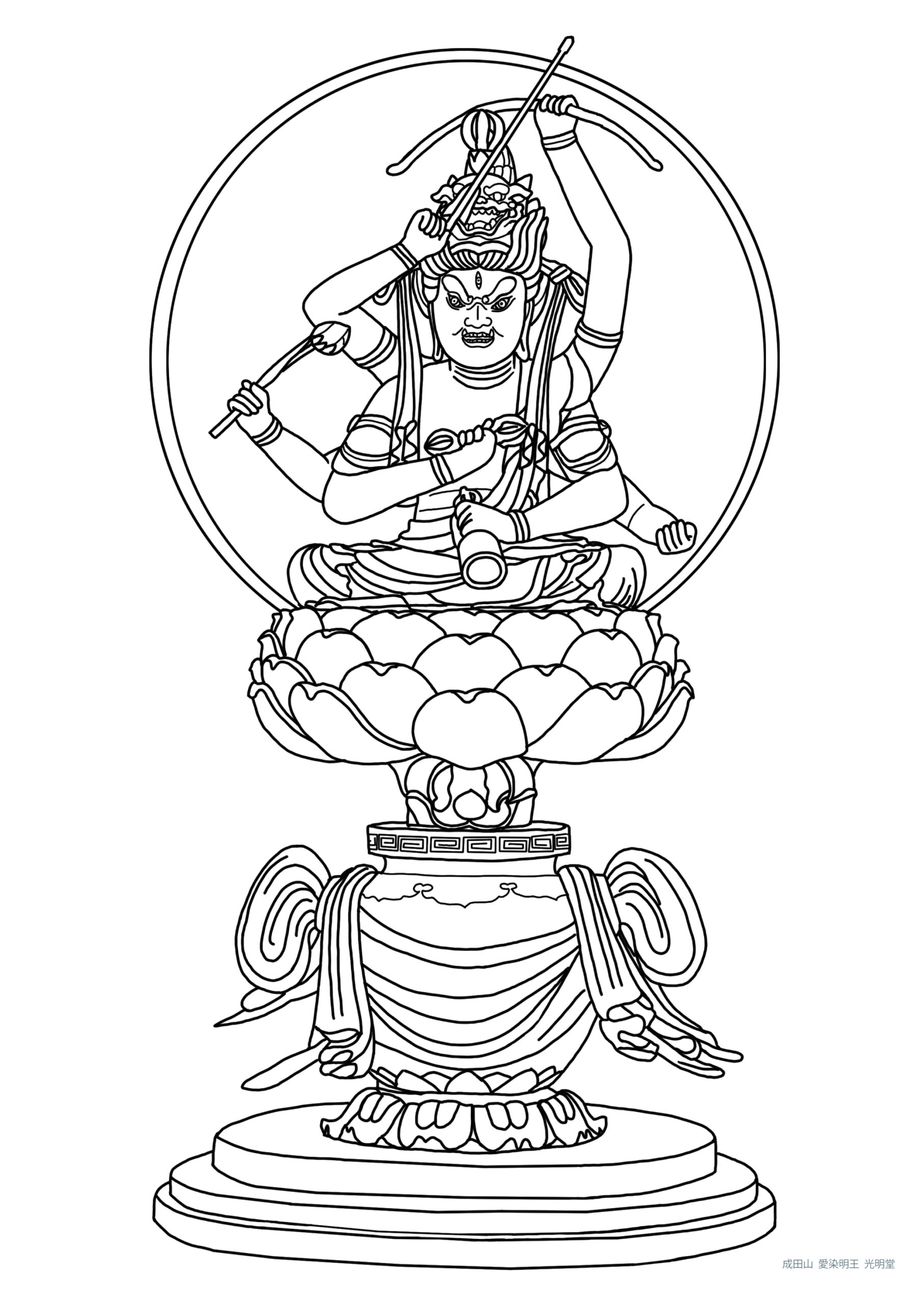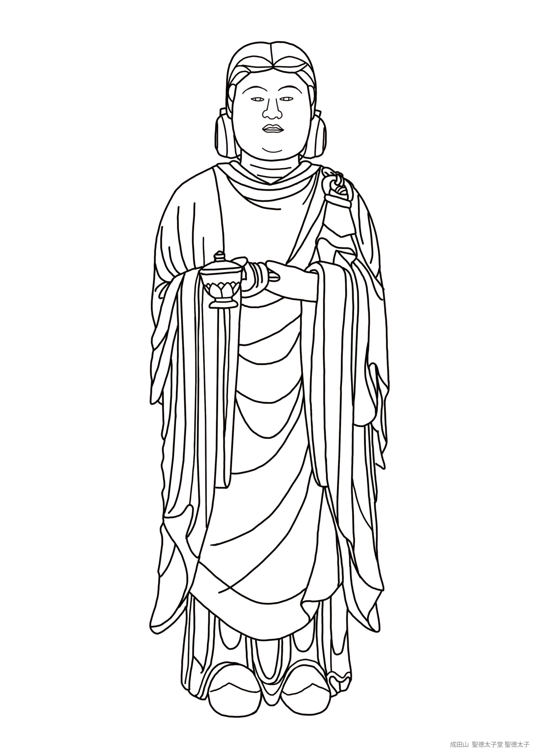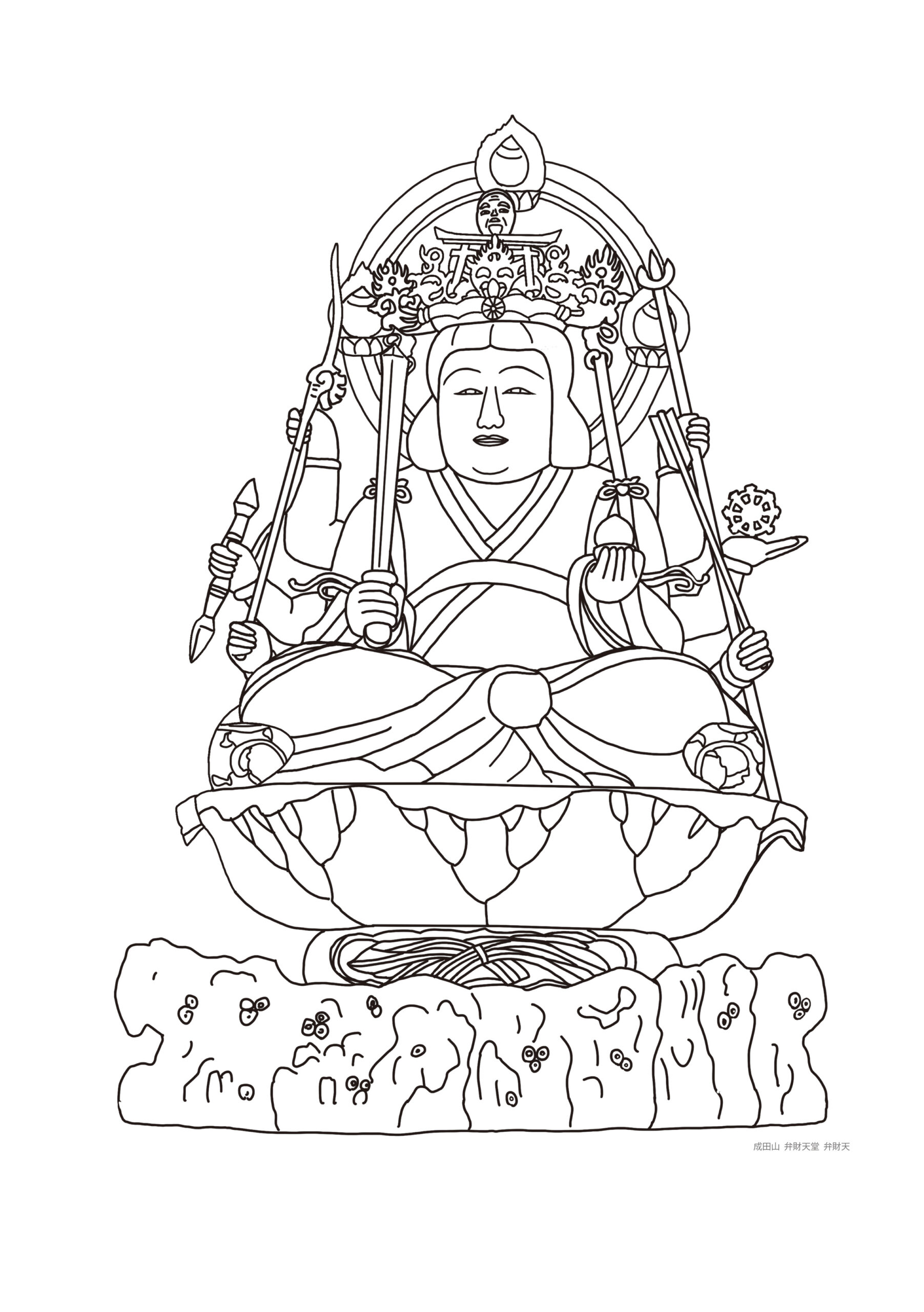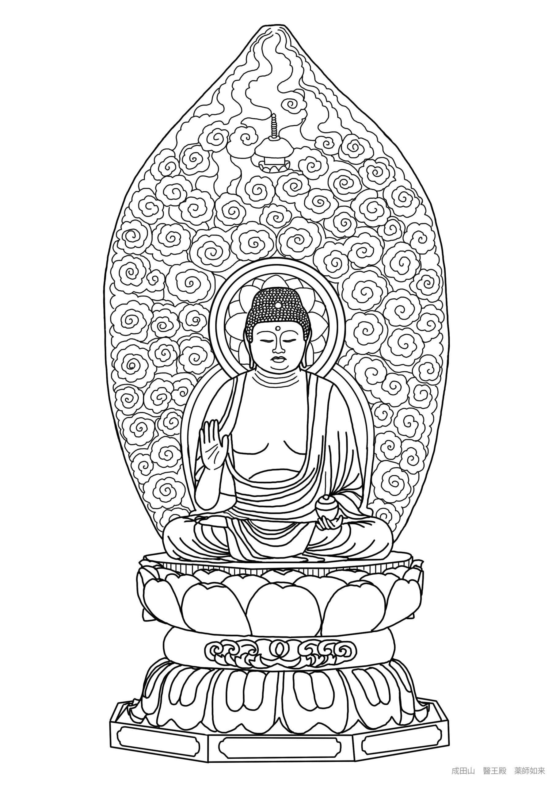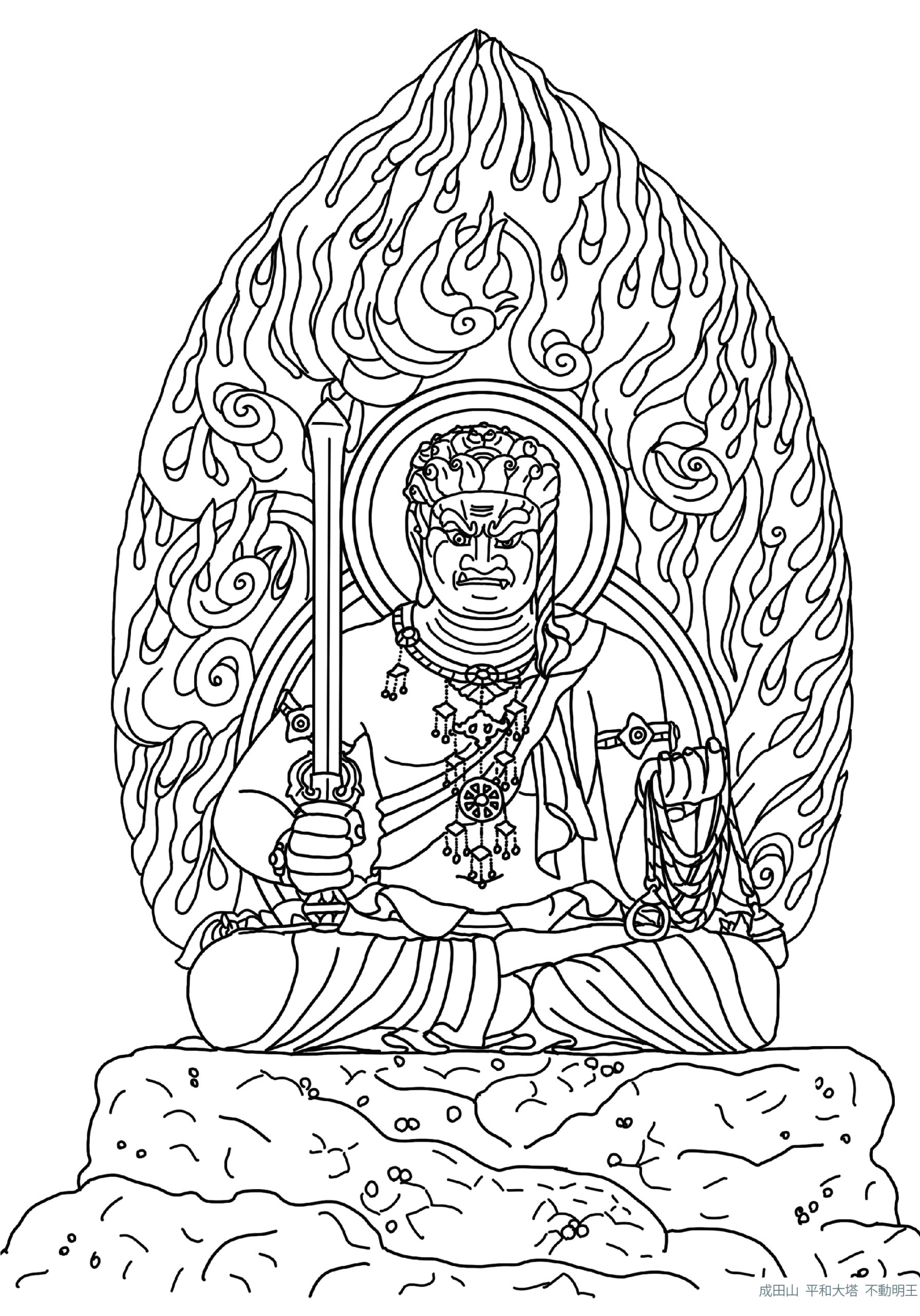 仏像イラストレーターの田中ひろみさん書き下ろしの塗り絵です。塗り終わったら成田山へ郵送して納仏しましょう。