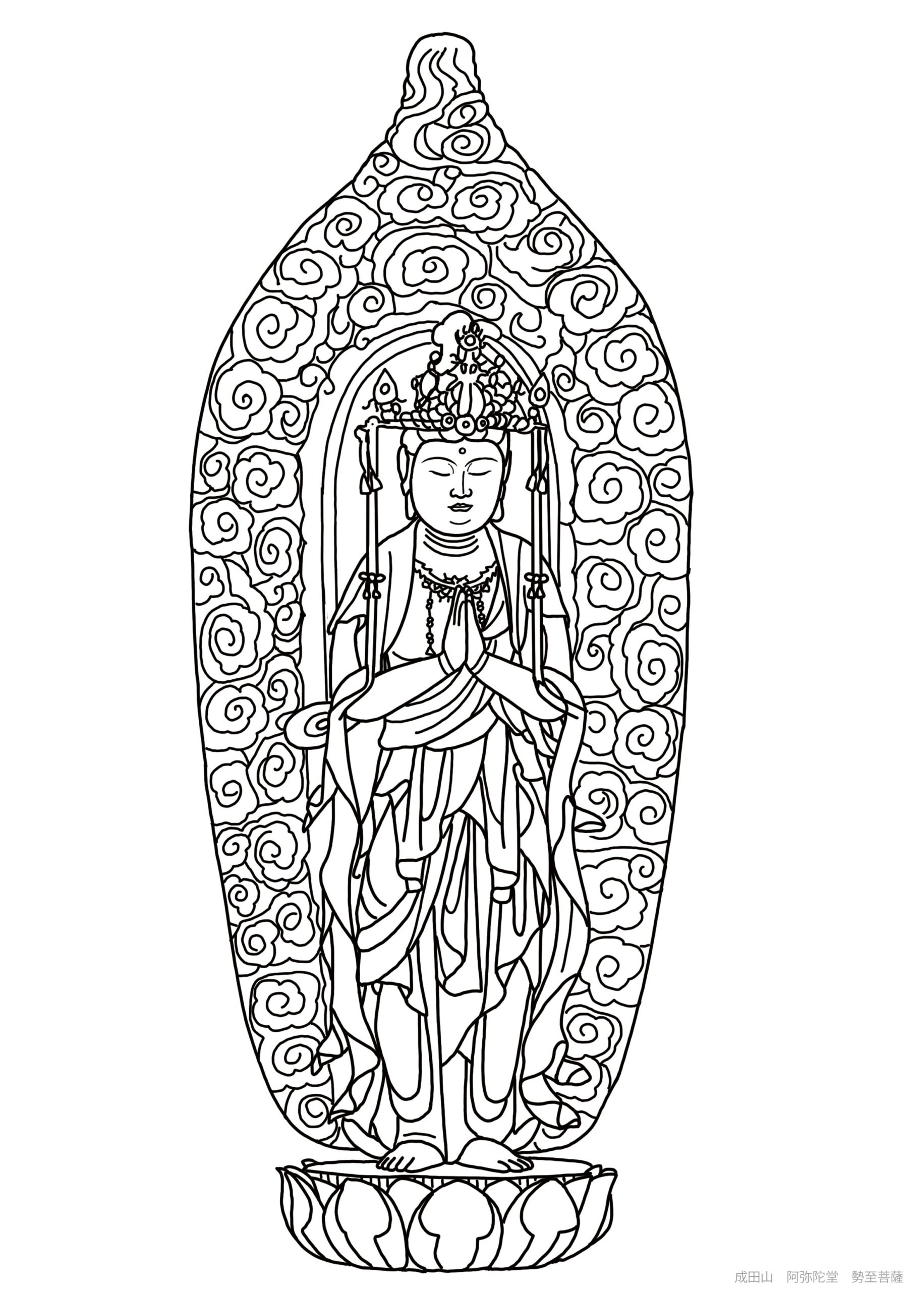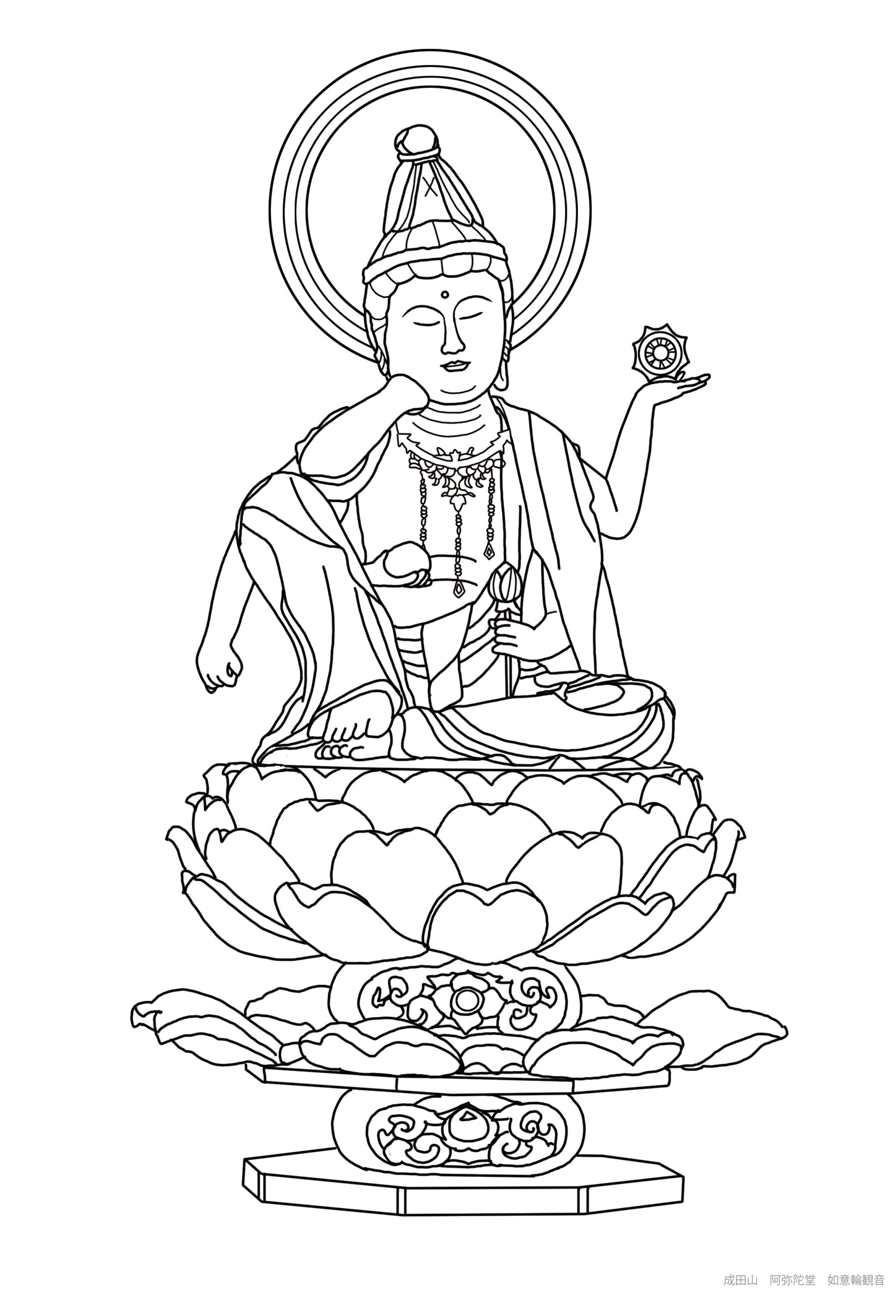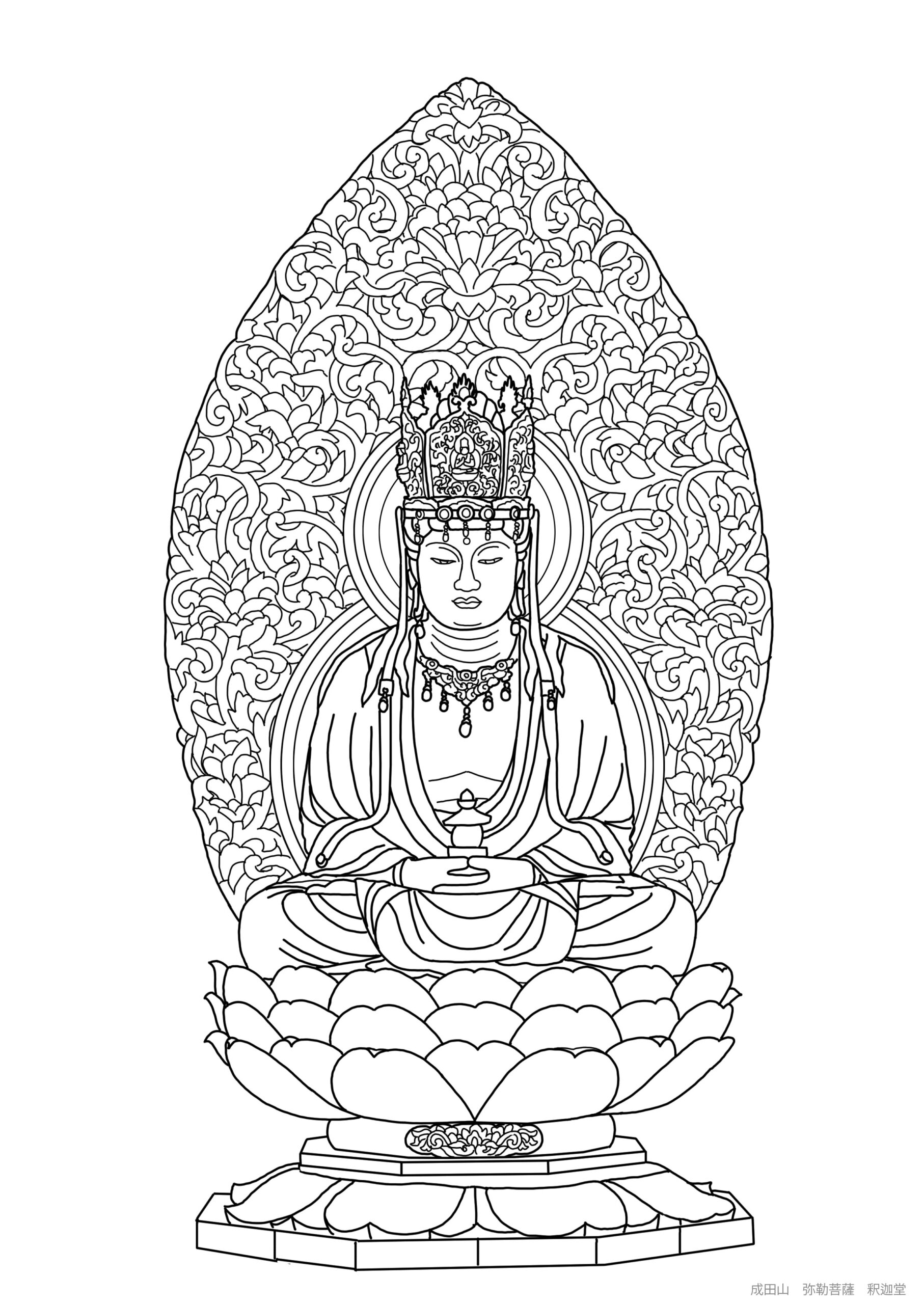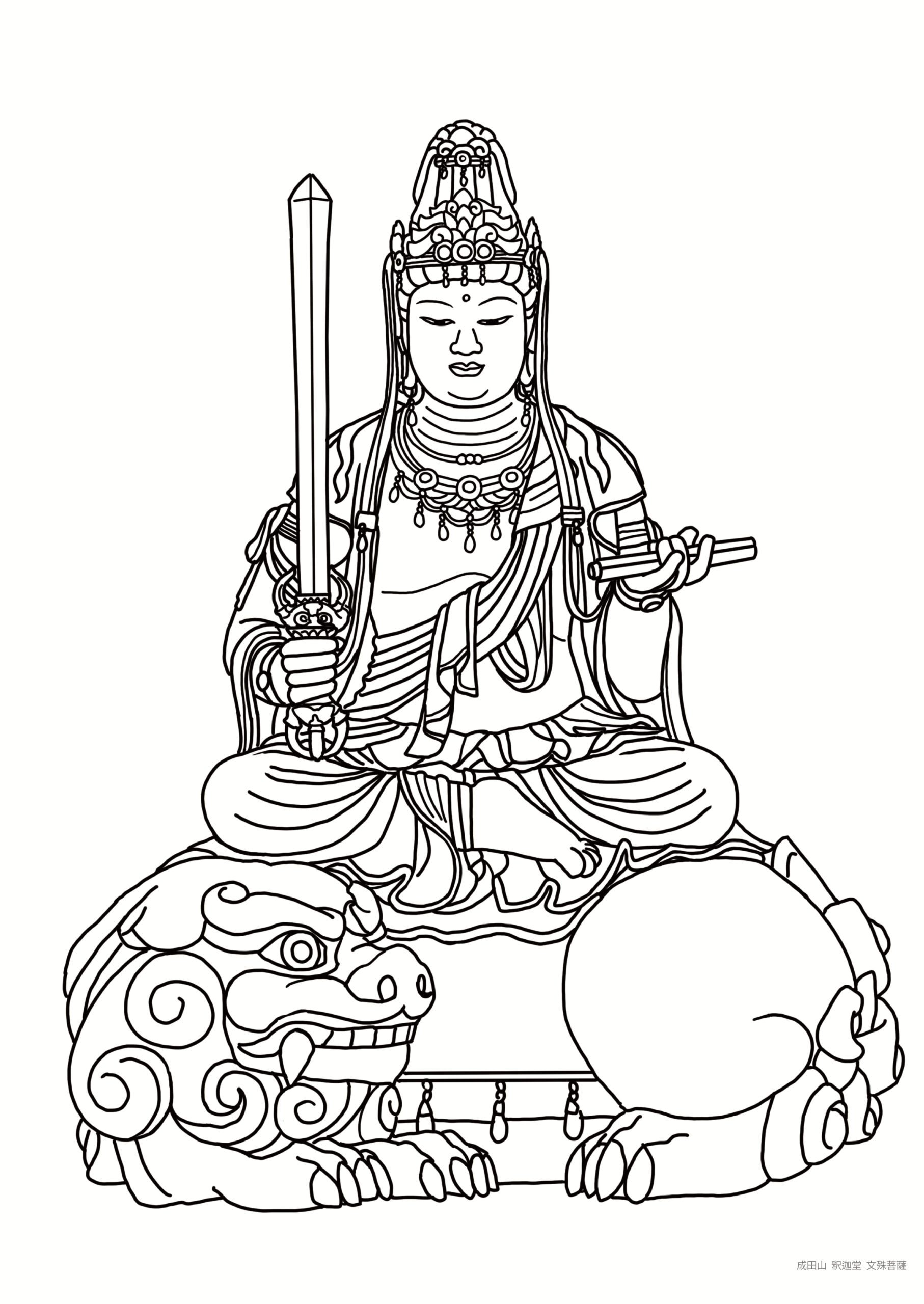 仏像イラストレーターの田中ひろみさん書き下ろしの塗り絵です。塗り終わったら成田山へ郵送して納仏しましょう。