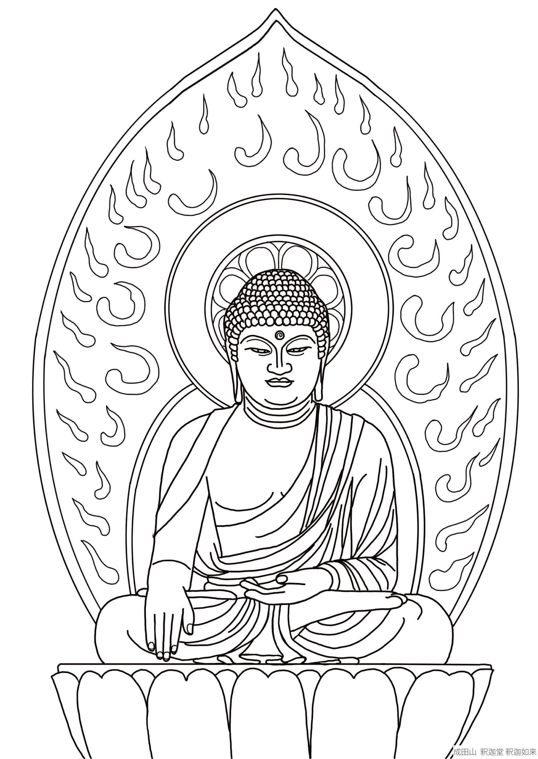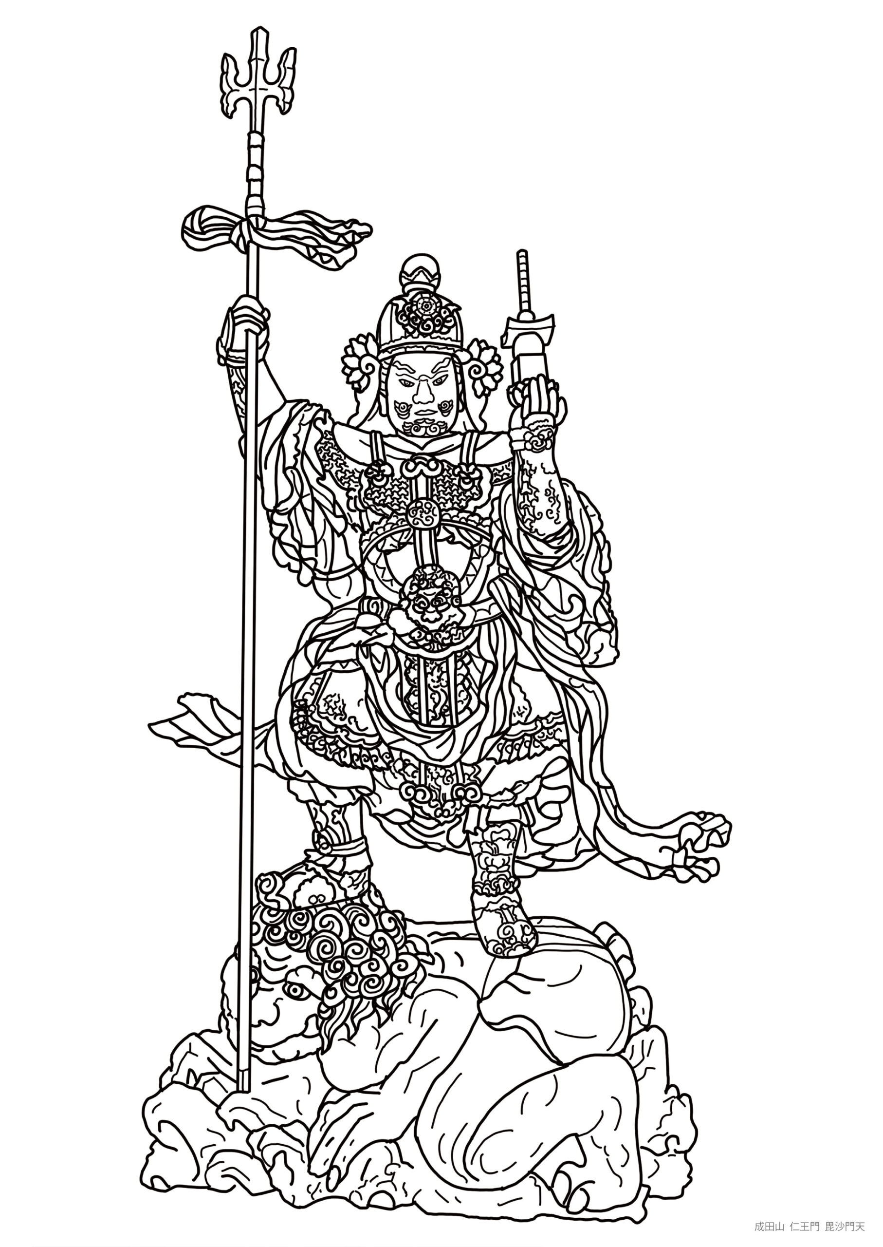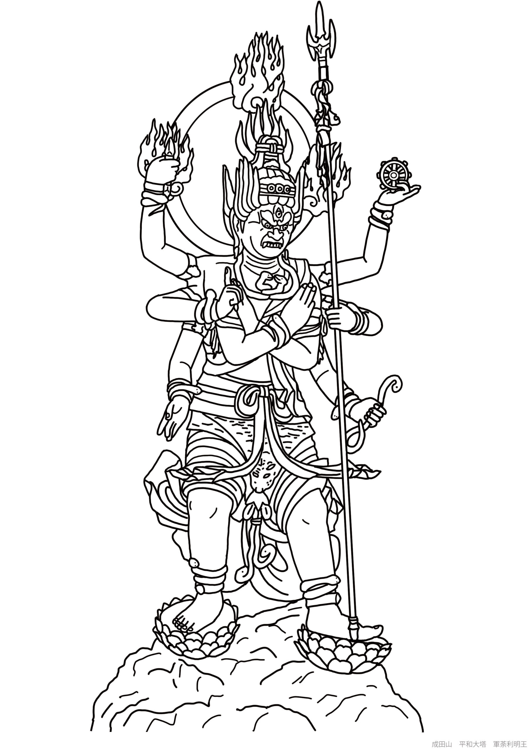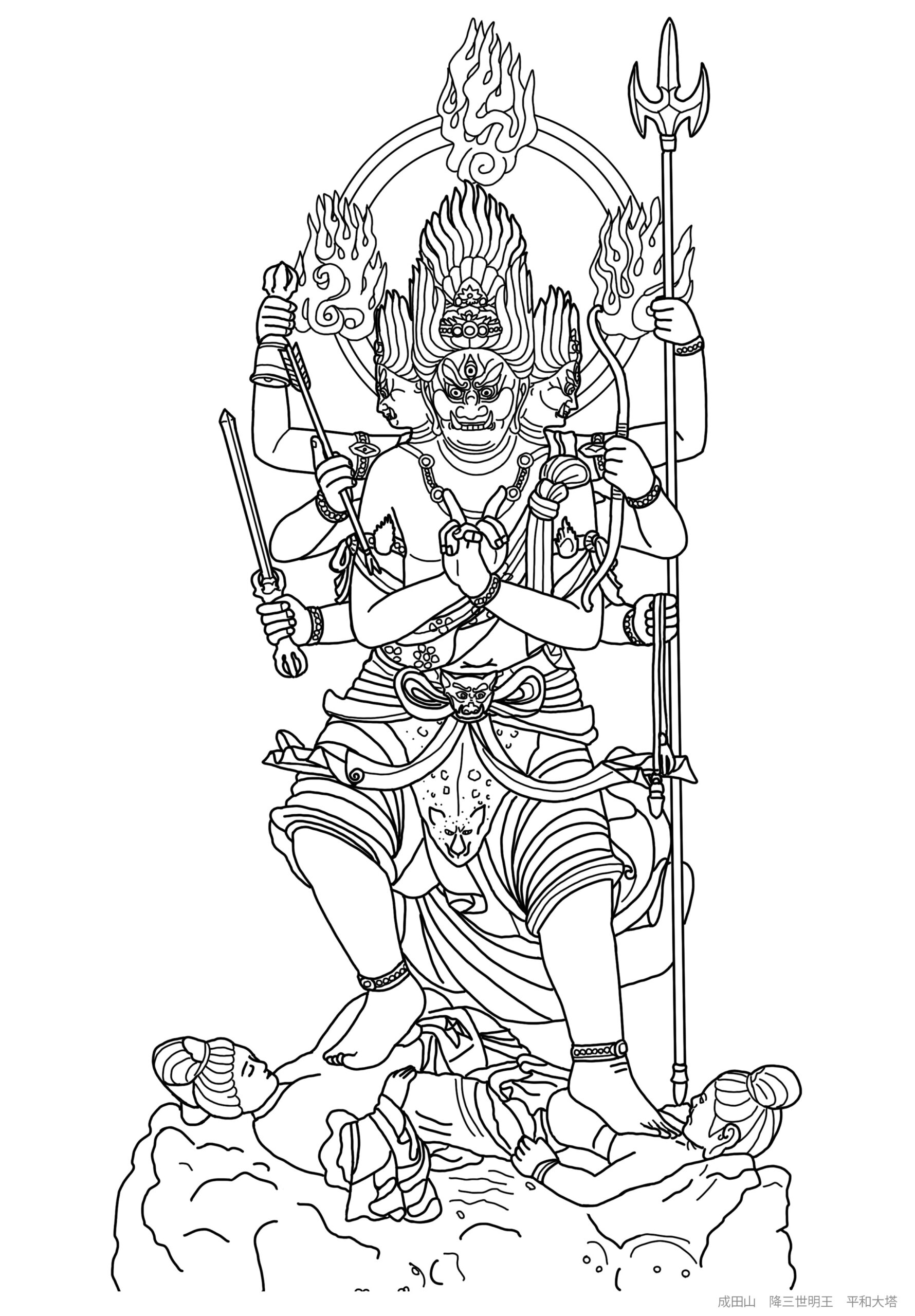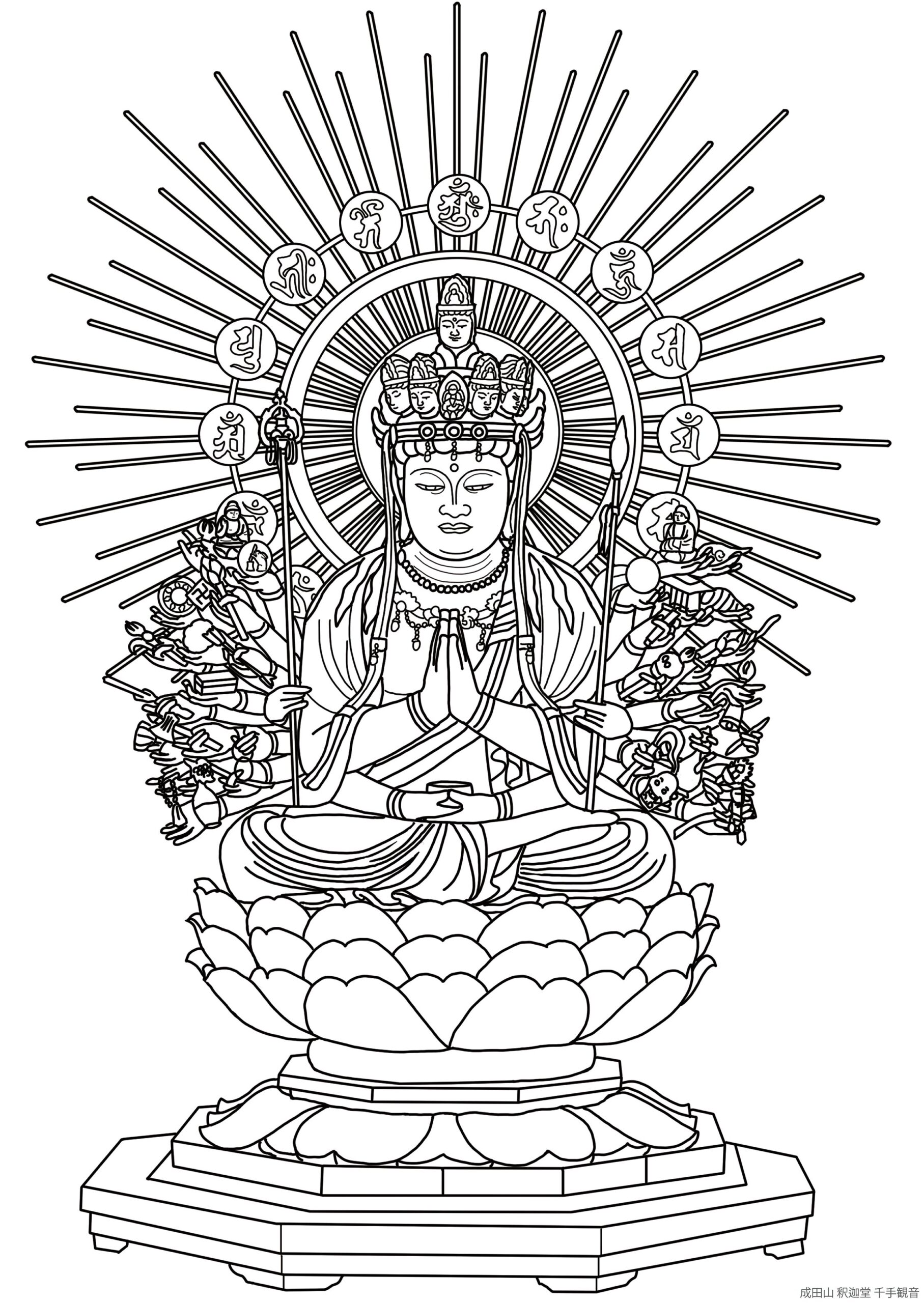 仏像イラストレーターの田中ひろみさん書き下ろしの塗り絵です。塗り終わったら成田山へ郵送して納仏しましょう。