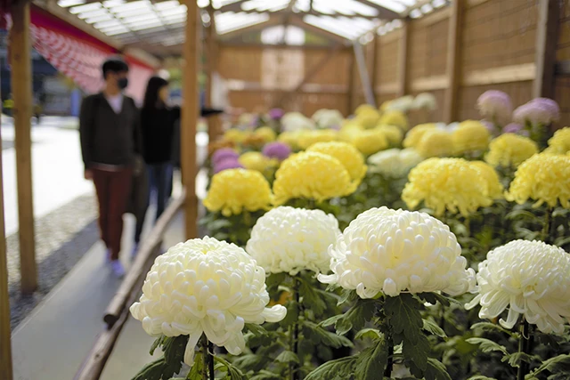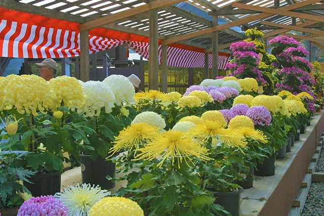 成田山菊花大会は1883年(明治16年)に成田栽菊社(現・成田山菊花会)によって始められた伝統ある大会です。秋の恒例行事として毎年開催され、今年で142回目を迎えました。会員が丹精込めて育てた作品が展示され、参詣者を楽しませてくれます。
