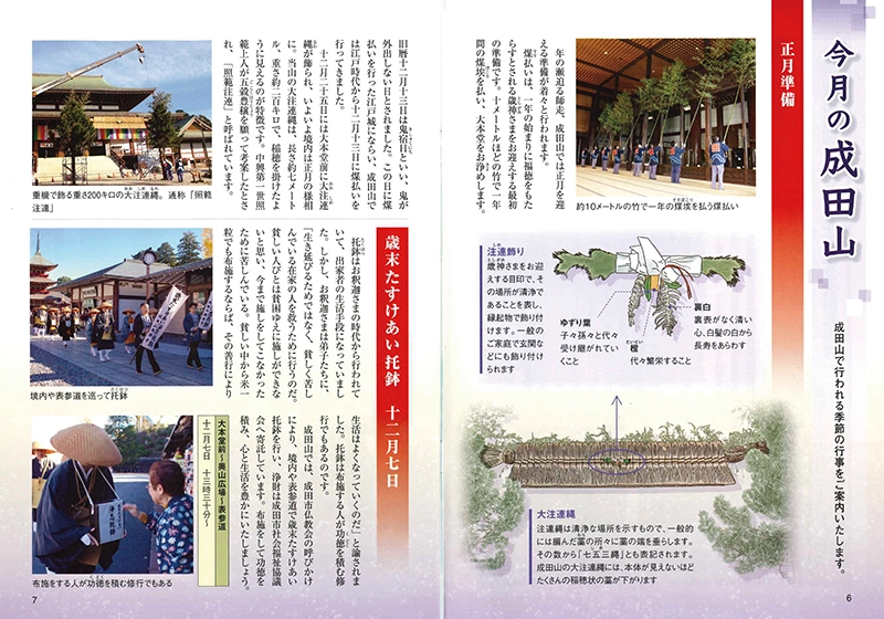 | 今月の成田山 | 正月準備 / 歳末たすけあい托鉢 / 納め札焚き上げ / お守り紹介 |