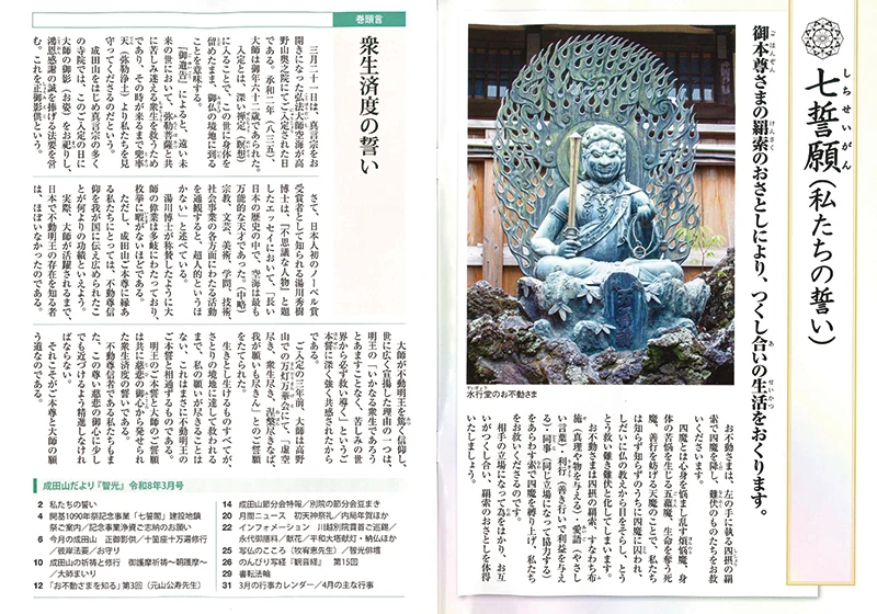 成田山だより「智光」は、皆さまとお不動さまが御縁を深める架け橋となるべく発行している月刊誌です。