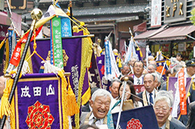 成田山には全国各地の不動尊信仰者によって組織される千二百余の講社・奉賛会があります。それぞれ正月や五月を中心に毎年、成田山へ参詣しています。
