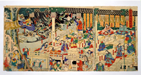 江戸時代になると、国学者の本居宣長が『古事記伝』を出版したことをきっかけに、出雲の「神議り」を題材にした浮世絵が描かれるようになりました。その中には、集まった神々が男女の名前を記した木札の組み合わせを相談し、それをつないで縁結びをしている様子が描かれています。そうした浮世絵が、江戸時代中期以降、民衆の間に広がり、縁結びは男女の新たな出会いを願うものとして捉えられてきたと考えられています。